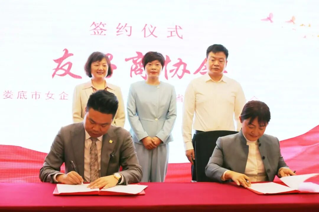 9月25日,在娄底市妇联李力主席、娄底市工商联梁卫平主席等领导的见证下,朱增辉会长代表湖南省商标品牌协会与娄底市女企业家联合会签署友好商协会战略合作,协会将助力娄底女企业家通过品牌建设打造品牌核心竞争力。娄底市工商联熊燕妮副主席主持签约仪式,联合会近100位会员单位代表参加本次活动。